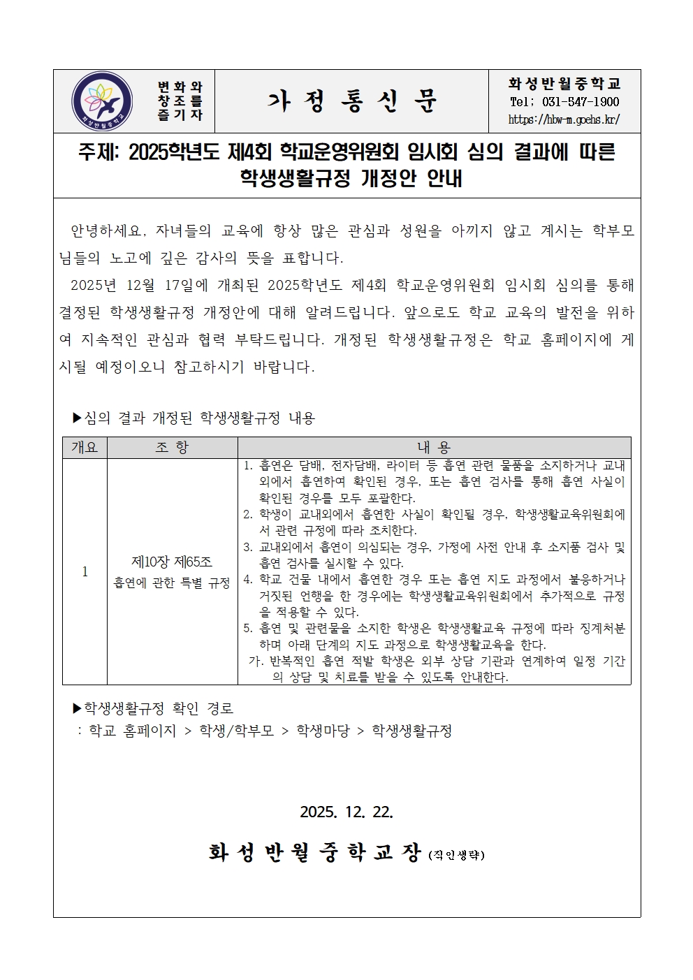 첨부자료1 : 2025학년도 화성반월중학교 학생생활규정001.jpg